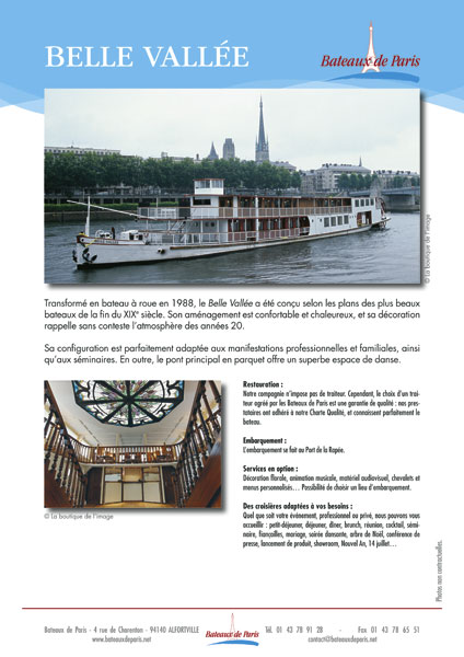 Création de l'identité visuelle de la société "Bateaux de Paris" et déclinaison de cette identité sur les principaux documents commerciaux et bureautiques.